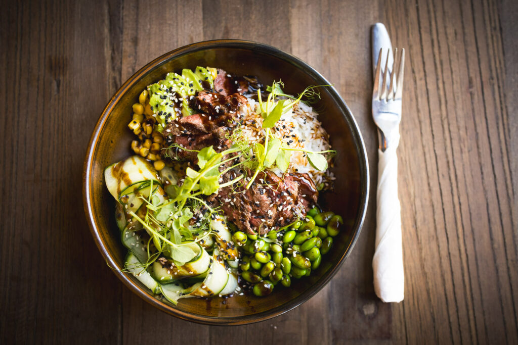 chargrilled 4oz minute steak, two fried eggs, crispy new potatoes, chimichurri sauce · GF