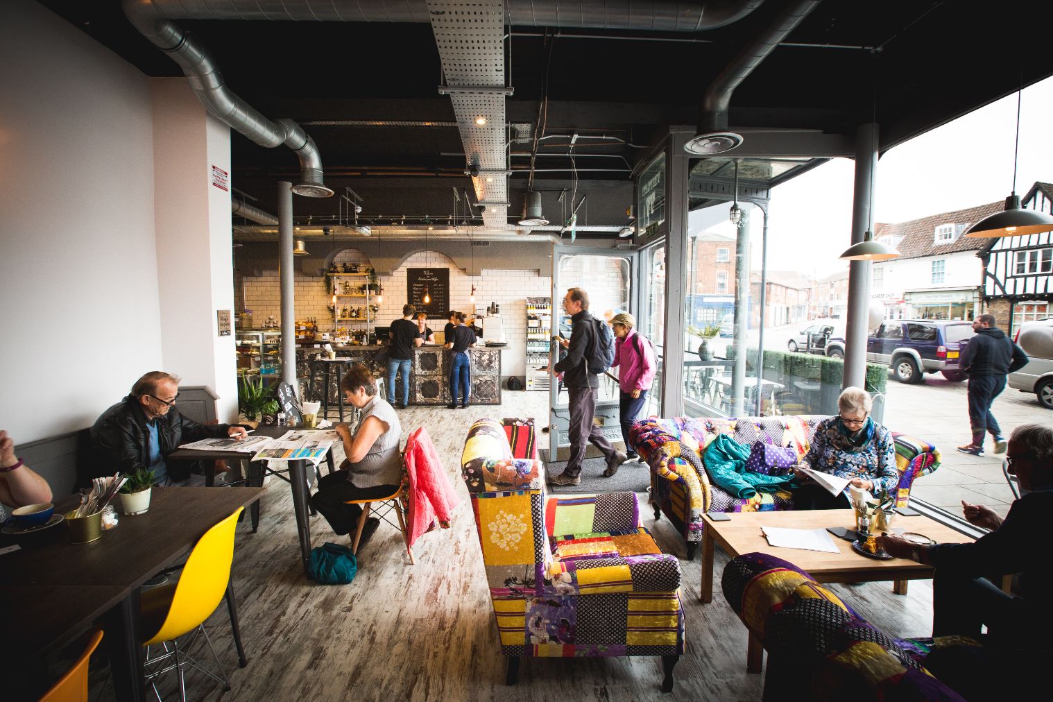 Bright, welcoming spaces just off the high street. Enjoy the sun-soaked terrace on warm days, comfy booths inside, and softer acoustics that make conversations easy.